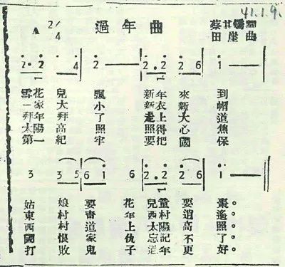 1941年1月9日《晋察冀日报》上刊载的《过年曲》曲谱图